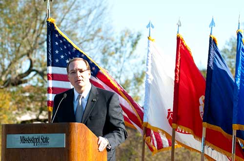 President Keenum spoke at the Veterans Day Cerenony on the Drill Field. President Keenum spoke at the Veterans Day Cerenony on the Drill Field.