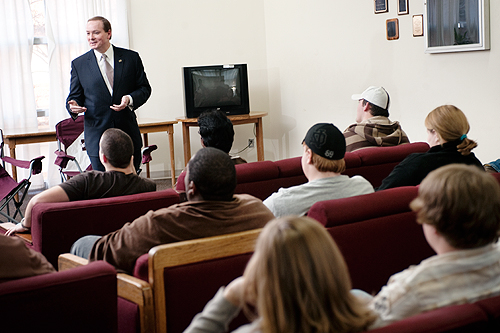 President Keenum visited with a number of Evans Hall students for informal comments about his life experiences, including the opportunities provided by his MSU degrees.
