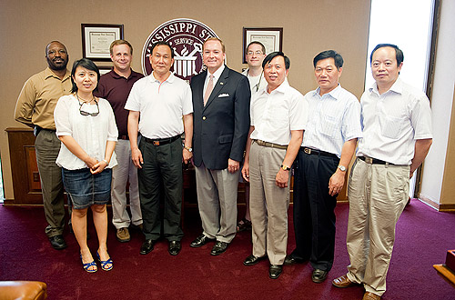 Members of the Chinese State Forestry Administration visited with MSU President Mark Keenum and Scott Willard, head of biochemistry and molecular biology, during a campus visit recently. Among topics of discussion were biomass, forest fire management, pest species control, and sustainable tourism. USDA and Memphis Zoo personnel also accompanying the delegation.