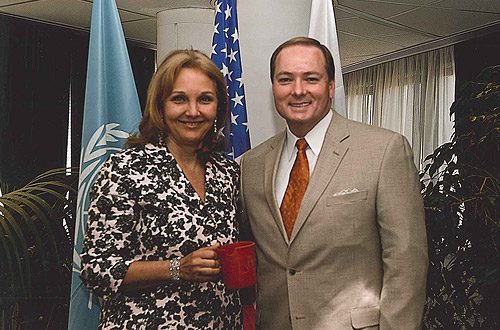 MSU President Dr. Mark Keenum met recently in Rome with Josette Sheeran, director of the United Nations' World Food Program, the largest humanitarian organization fighting hunger around the world. Director Sheeran is pictured with a red cup used by the WFP to distribute free school meals to hungry children. The group's "Fill the Cup" campaign is raising awareness and funding to address hunger issues in developing countries and symbolizes the positive difference filling the cup could make in the life of a hungry child. Dr. Keenum and Director Sheeran talked about how Mississippi State University might have become engaged in WFP efforts worldwide. As a result, MSU and WFP officials have already begun discussions on joint initiatives.