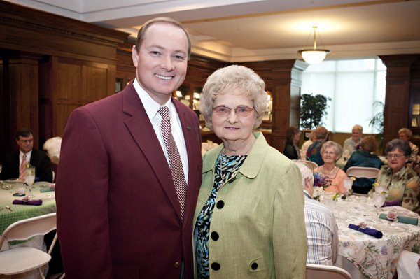 President Keenum with his Mother, Shirley Keenum, honoring her recent retirement as a librarian with a reception in the theme of this year's Maroon Edition reading choice, The Three Cups of Tea.