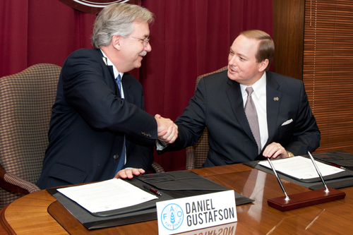 President Keenum signs an agreement to work together with the United Nation's Food and Agriculture Organization. President Keenum signs an agreement to work together with the United Nation's Food and Agriculture Organization.