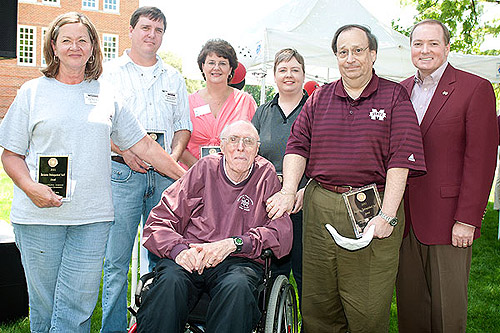 Dr. Keenum presents employees with Zacharias Staff Awards, named in honor of president emeritus Donald Zacharias (seated).