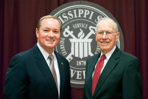 Former governor William Winter visited Mississippi State Tuesday to view the Ulysses S. Grant Presidential Collection in Mitchell Memorial Library. Before the tour, Winter was welcomed by MSU President Mark E. Keenum, who also hosted a luncheon in his honor. The Grant Collection consists of some 15,000 linear feet of correspondence, research notes, artifacts, photographs, scrapbooks, and memorabilia.