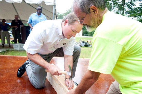President Keenum helps with the Maroon Edition Habitat build. President Keenum helps with the Maroon Edition Habitat build.
