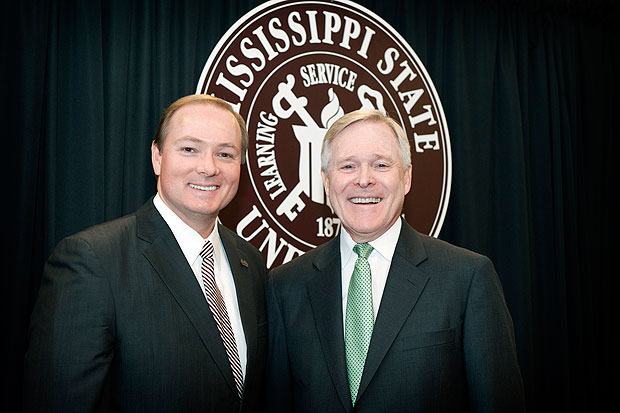 President Keenum with Secretary of the Navy and former Mississippi Governor Ray Mabus during Mabus' visit to campus to speak at the 2011 Biofuels Conference.