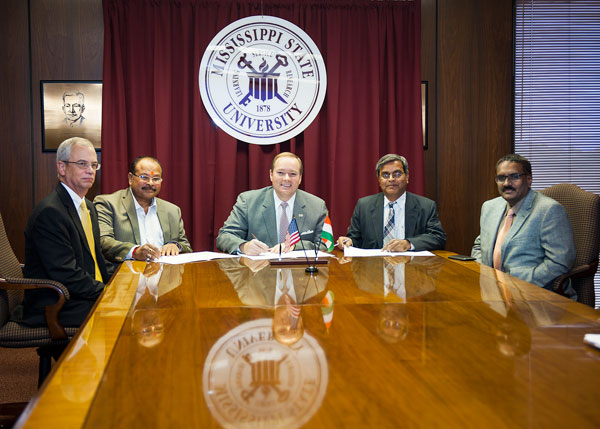 Celebrating the signing today of an agreement between MSU and India's Archarya N.G. Ranga Agricultural University (ANGRAU) for cooperation and collaboration in global agricultural research and development. Dr. Mark Keenum signed the memorandum of understanding with government agricultural officials from the state of Andhra Pradesh, India, and a represenative of ANGRAU.