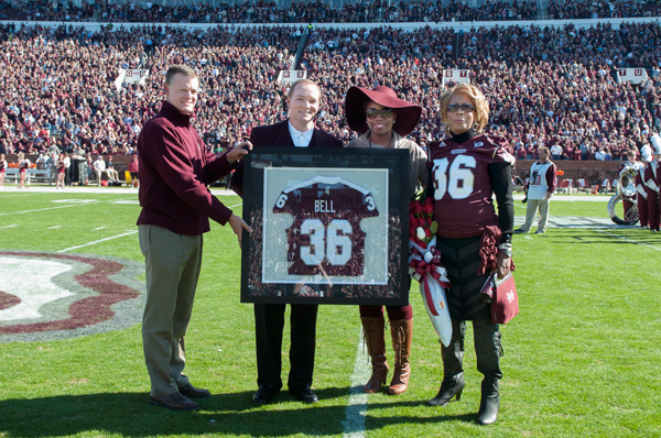 Dr. Keenum and Scott Stricklin present Nick Bell's jersey to his family for Senior Day. Dr. Keenum and Scott Stricklin present Nick Bell's jersey to his family for Senior Day.