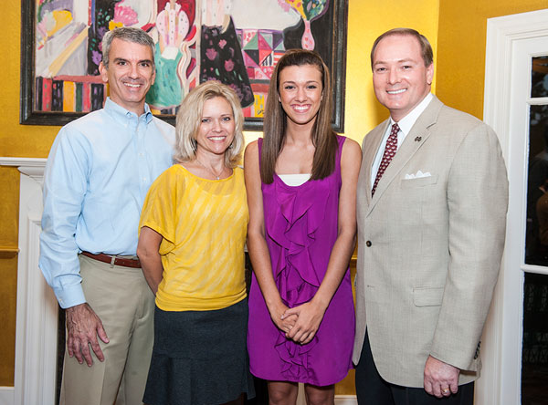 Dr. Keenum hosts National Merit Finalist Shelby Given and her parents, Mr. & Mrs. Steve Given, at the president's home.