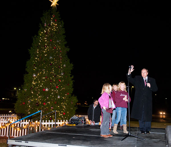 Dr. Keenum lights the MSU Christmas tree during the annual Holiday in the Junction ceremony. Dr. Keenum lights the MSU Christmas tree during the annual Holiday in the Junction ceremony.