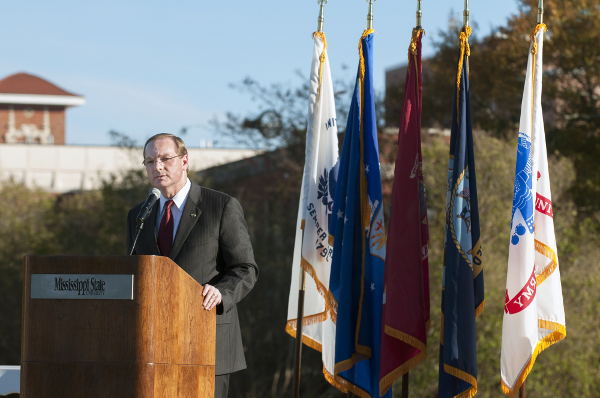 Dr. Keenum speaking at the 2012 MSU Veterans Day Program at Mississippi State, honoring those MSU students and Oktibbeha County residents who have served.