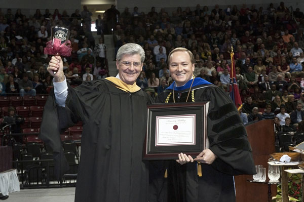 Governor Phil Bryant accepts an "Honorary Bulldog" certificate from Dr. Mark Keenum during December 2012 Commencement.