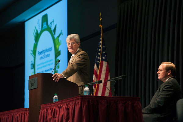 Governor Phil Bryant speaks during a campus energy conference. Governor Phil Bryant speaks during a campus energy conference.
