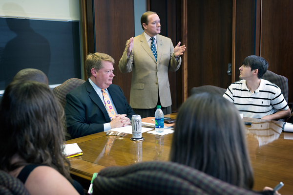 MSU alumnus and CEO of Hancock Bank, John Hairston, spoke to Dr. Keenum's leadership class about his career and how he made the move from Chemical Engineering to Banking.