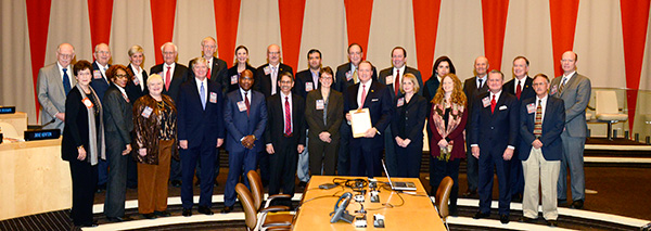 Mississippi State University President Mark E. Keenum (front row, fifth from right) and leaders from other universities around the nation signed the Presidents' Commitment to Food and Nutrition Security (PUSH) at the United Nations in New York City on De