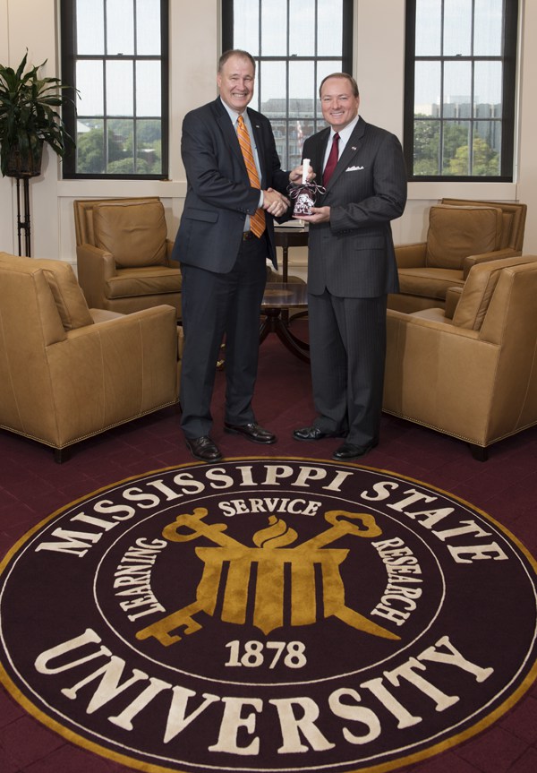 Mississippiâs 1st District Congressman Trent Kelly, left, and MSU President Mark E. Keenum visited Friday [Aug. 28] in the presidentâs office while Kelly was on campus for a dayâs worth of activities, including the opening of a new Veterans Business Outreach Center in the Thad Cochran Research, Technology and Economic Development Park and discussions with the leadership of the Division of Agriculture, Forestry and Veterinary Medicine.