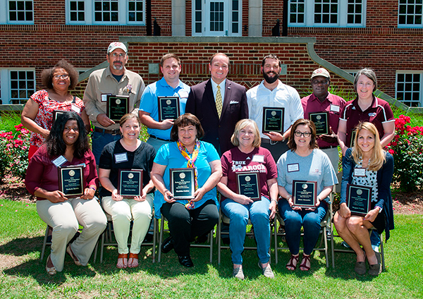 MSU President Mark E. Keenum (back, center) congratulates the university’s newest Zacharias Staff Award winners for 2016.