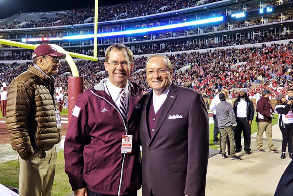 MSU President Mark E. Keenum, right, and the universityâs Athletic Director John Cohen were on Scott Field at Davis Wade Stadium on Nov. 19 to congratulate the 19 MSU senior football team members playing their final home game of their college careers.