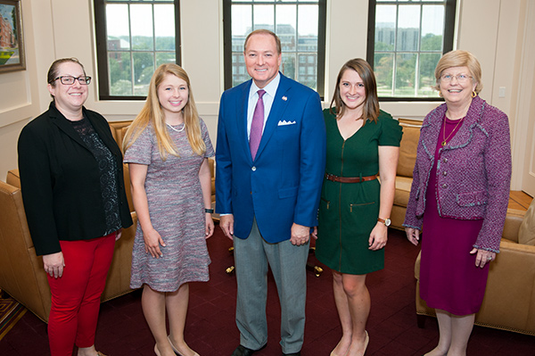 MSU President Mark E. Keenum, center, had lunch recently with 2017 student honorees of the President’s Commission on the Status of Women.