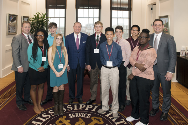The newly designated Borlaug Scholars enjoyed a full day at MSU learning about food security, including a chance to meet with MSU President Mark E. Keenum, a longtime proponent of food security. Pictured (left-right) are Scott Willard, associate dean of MSUâs College of Agriculture and Life Sciences; Nyshedra Jordan, Thomas Shaw, and Angelique Wilson all of Golden Triangle Early College High School; Keenum; Gabe Entrekin of Poplarville High School; Charles Smith, David Burnett, and Christian Williamson of Golden Triangle Early College High School; Mary Lurks of Wingfield High School; and Keegan Kautzky, director of national programs for the World Food Prize.