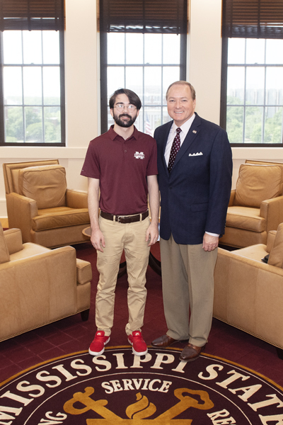 Mississippi State President Mark E. Keenum, right, meets with the university’s newest Goldwater Scholar, Nicholas A. “Nic” Ezzell.