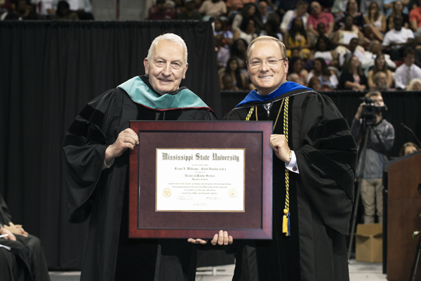 Mississippi State University President Mark E. Keenum presents Frank Williams, a noted historian and former Rhode Island Supreme Court Chief Justice, with an honorary Doctor of Public Service degree during MSUâs spring 2018 commencement ceremonies. Williams served as the graduation speaker for all three ceremonies in early May. Williams is the longtime president of the Ulysses S. Grant Association and last year, along with his wife Virginia, donated his extensive collection of Abraham Lincoln materials to MSU. He has played a key role in making MSU one of the nationâs leading centers of study on the American Civil War.