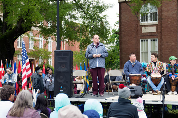MSU President Mark E. Keenum welcomes the crowd to the university’s annual International Fiesta, held in April.