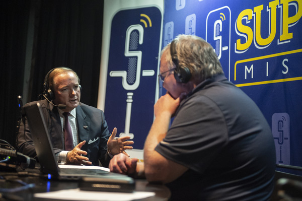 MSU President Mark E. Keenum discusses the university’s achievements and positive momentum on The J.T. Show during a SuperTalk Mississippi live remote from campus. As part of #StateProud week in October, SuperTalk spent an entire day broadcasting from the Dawg House in the Colvard Student Union.