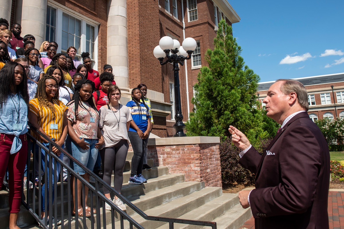 MSU President Mark E. Keenum met with and encouraged high-school students from 13 rural schools who were on campus in mid-June for a summer AP Physics preparatory academy. The program is part of an AP Access Pilot Program conducted by the Global Teaching Project and the Mississippi Public School Consortium for Educational Access. The initiative seeks to increase student enrollment in advanced coursework, particularly in science and mathematics, which correlate strongly with college and career success. This is the program’s third year and the third time MSU has hosted the intensive summer AP Physics preparatory academy.
