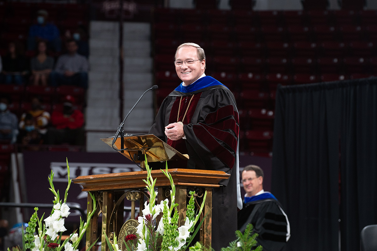 MSU President Mark E. Keenum encouraged Bulldog graduates to use the values of integrity, hard work and kindness to make a difference as they take the next step in their personal and professional lives.