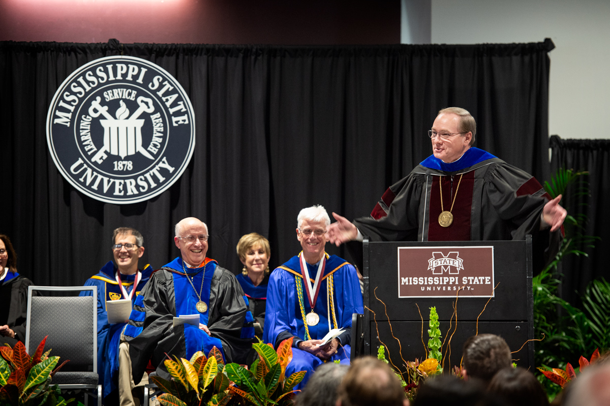 MSU President Mark E. Keenum welcomed university doctoral candidates and their families to the first hooding ceremony devoted entirely to Ph.D. graduates. Keenum helped to hood 64 graduates in December during this significant milestone in these students' lives.