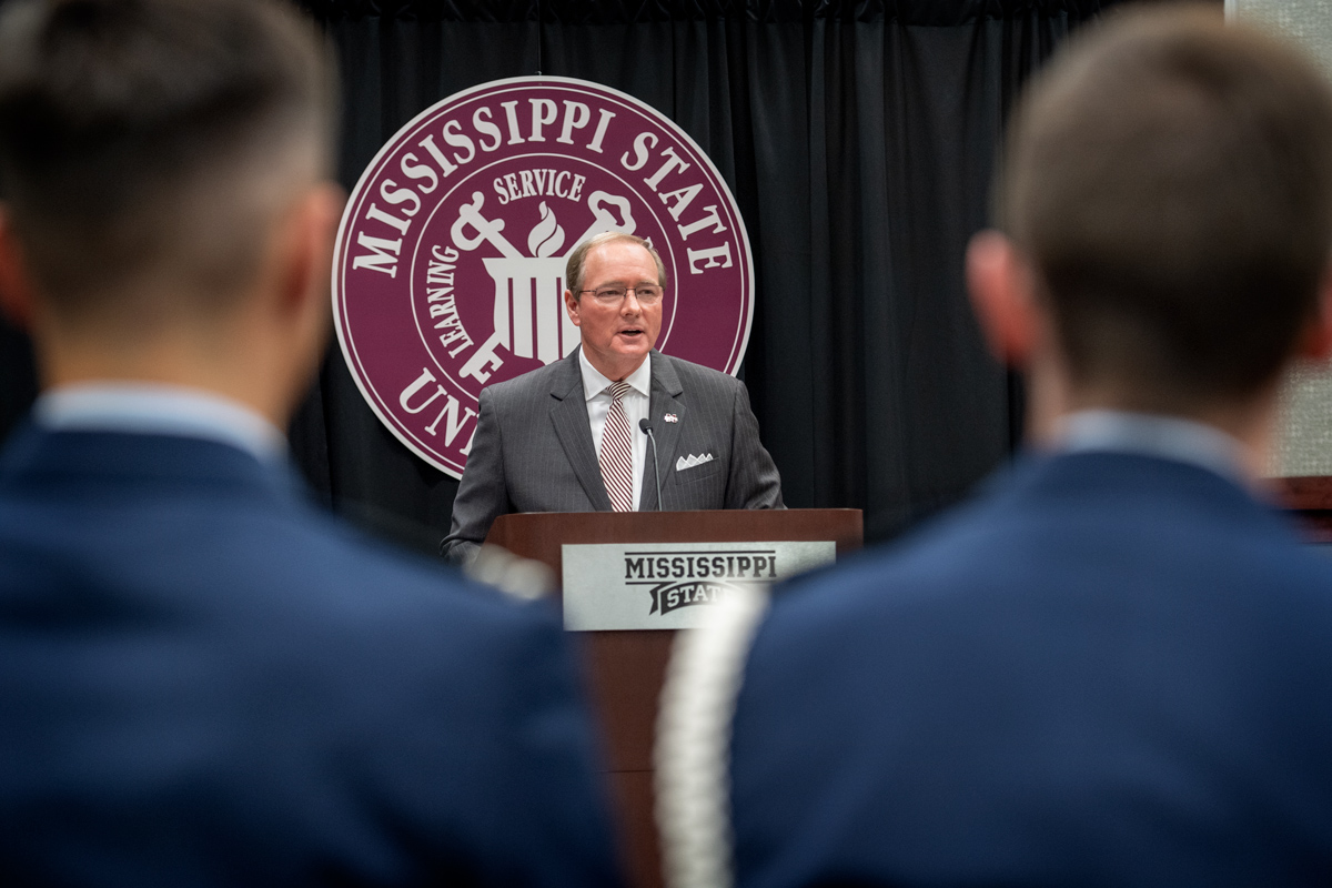 President Mark E. Keenum led the university’s annual Veterans Recognition Ceremony Nov. 11. While rainy weather moved the ceremony indoors, it didn’t dampen support for veterans and current service members and their families. Mississippi State is routinely recognized as one of the top universities in the country regarding support for the veteran community.