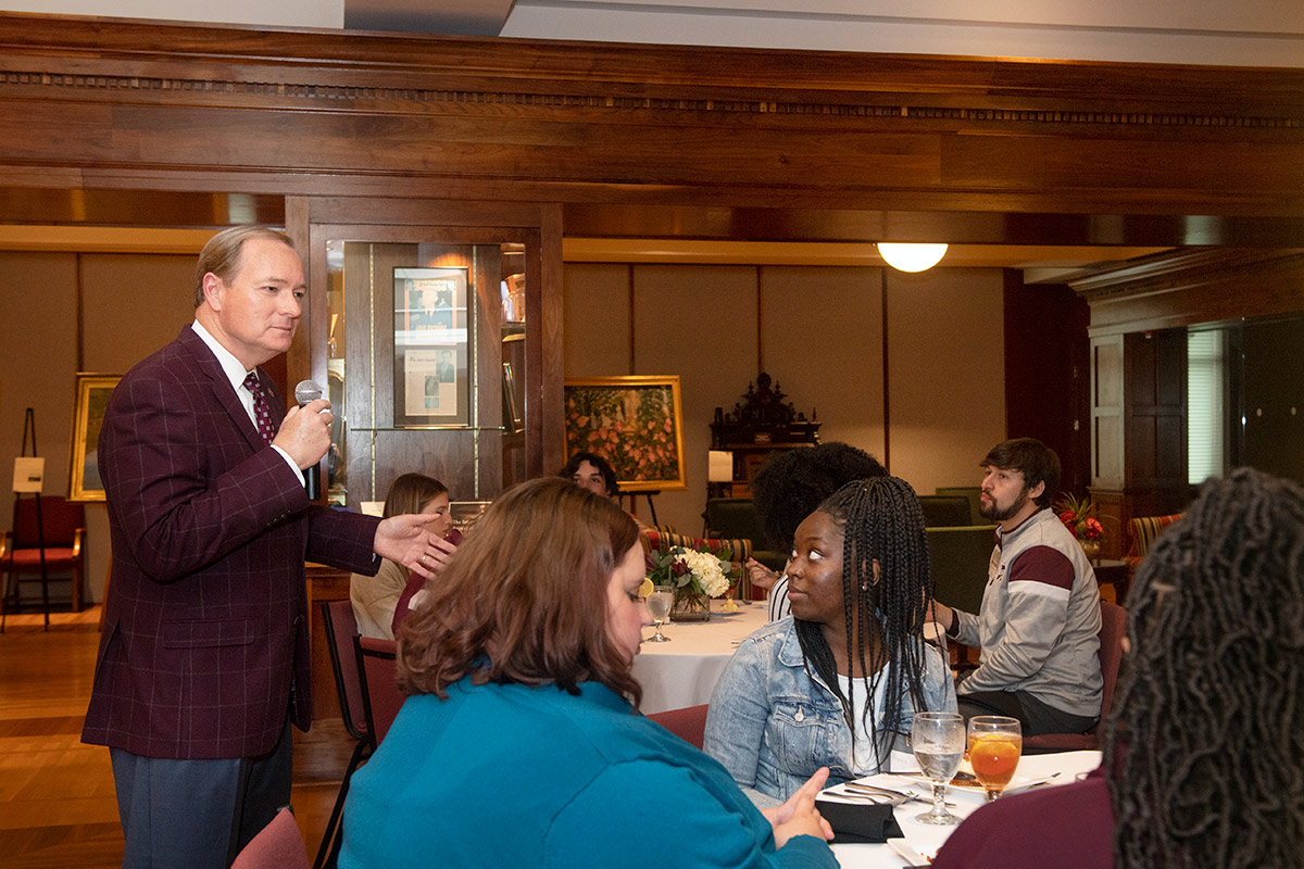 At a luncheon this week for Trio and Thrive program students, MSU President Mark E. Keenum encouraged those in attendance to take advantage of every opportunity the university offers in support of their earning a college degree. Educational success has been and continues to be a top priority for Keenum as the university proactively assists first-generation, low-income, foster-care, disabled, homeless and other disadvantaged students in these programs with a positive path to graduation.