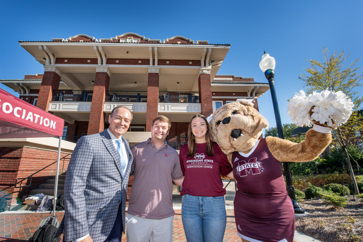 To kick off Homecoming Week 2022, MSU President Mark E. Keenum, left, and Belle, right, MSU’s sweetheart and Bully’s best friend, joined with court royalty for a student body biscuit breakfast. The Homecoming court included Hayden Foil of Gautier and Raegan Rushing of Biloxi, center, who were elected king and queen.