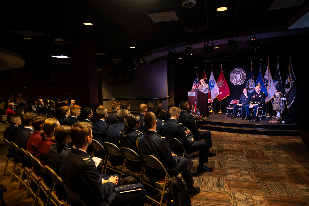 Mississippi State commemorated Veterans Day in November with MSU President Mark E. Keenum addressing faculty, staff and students in the Dawg House and thanking those who have and continue to serve the country in military roles.