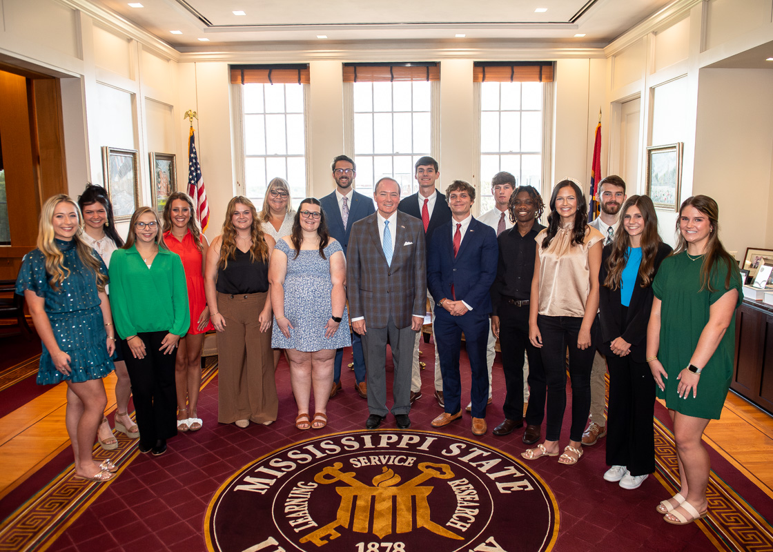 Mississippi State President Mark E. Keenum congratulates this fall’s 16 top transfer students who are recipients of Presidential Partnership Scholarships, the university's most prestigious awards for those enrolling at MSU from the state's community colleges.