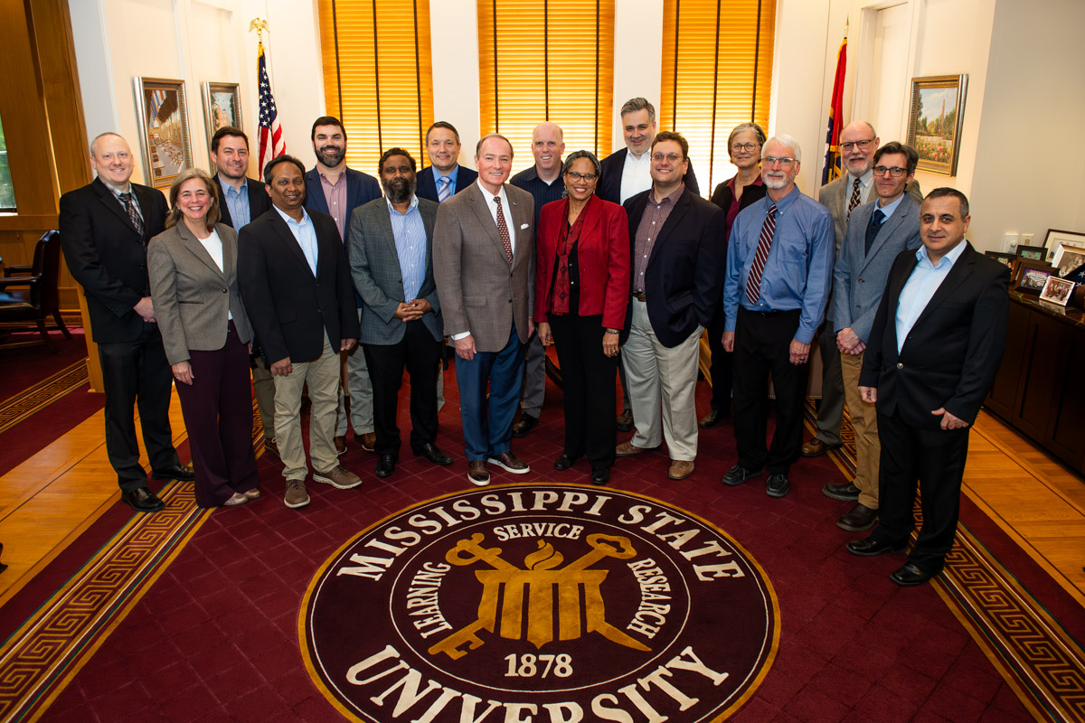 MSU President Mark E. Keenum, center, along with MSU Vice President for Research and Economic Development Julie Jordan, back row, second from right, congratulated the April graduates and coordinators of the 2023-24 MSU Faculty Leadership Program, which included 19 faculty members from departments across campus. The 10-month program helps outstanding faculty members further develop the skills needed to lead the university forward in its mission of learning, service and research.
