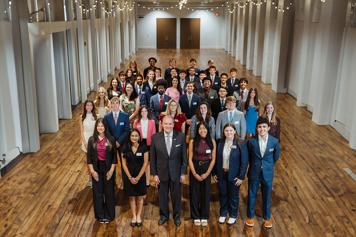 A total of 39 freshman Presidential Scholars were welcomed to Mississippi State in September by MSU President Mark E. Keenum, front center. The scholars, celebrated during an MSU Foundation reception at The Mill, are recipients of the university’s most prestigious undergraduate award and possess strong academic skills, creativity and drive for success. Their MSU experience offers study-abroad opportunities, internships, research fellowship awards and mentoring.
