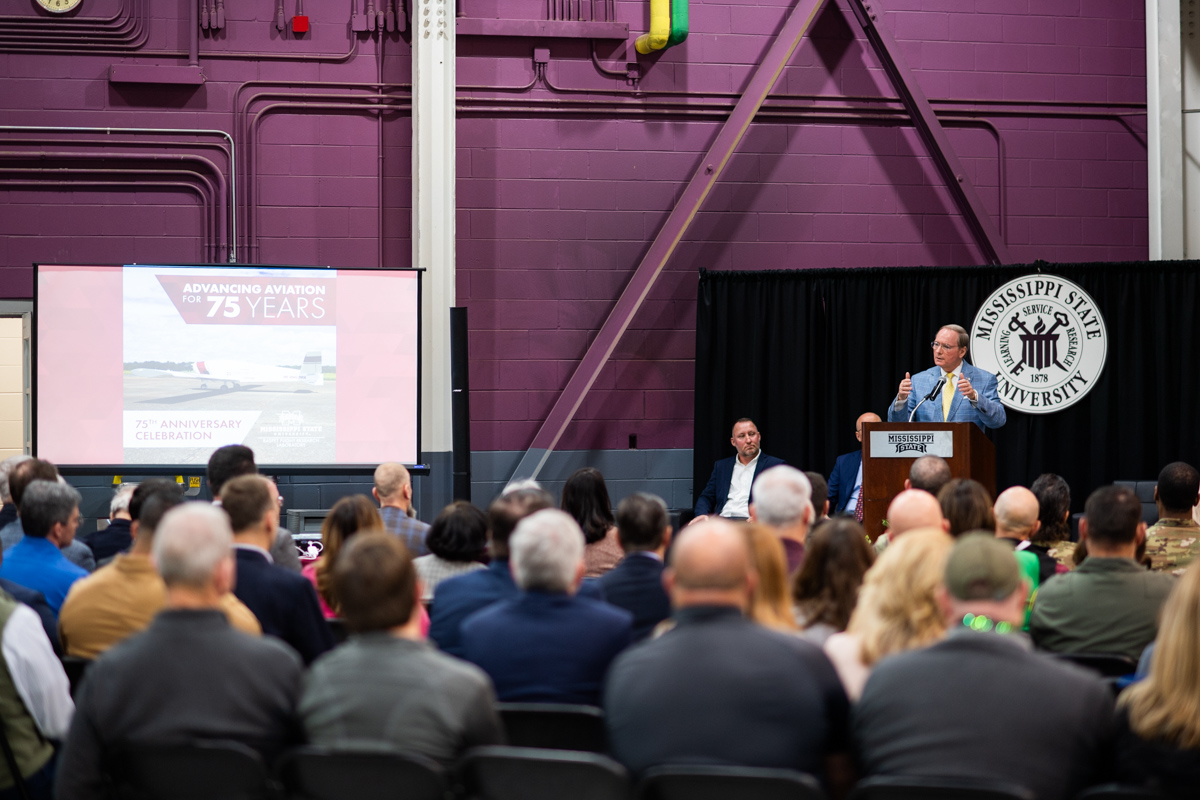 More than 100 people gathered to celebrate the continued success of MSU’s Raspet Flight Research Lab during a 75th anniversary celebration in March. University President Mark E. Keenum lauded the initial vision of Gus Raspet for a research hub that would make innumerous contributions to what was then the new field of aviation. “We have built on that legacy for many years, and we are going to continue building on it,” Keenum said.
