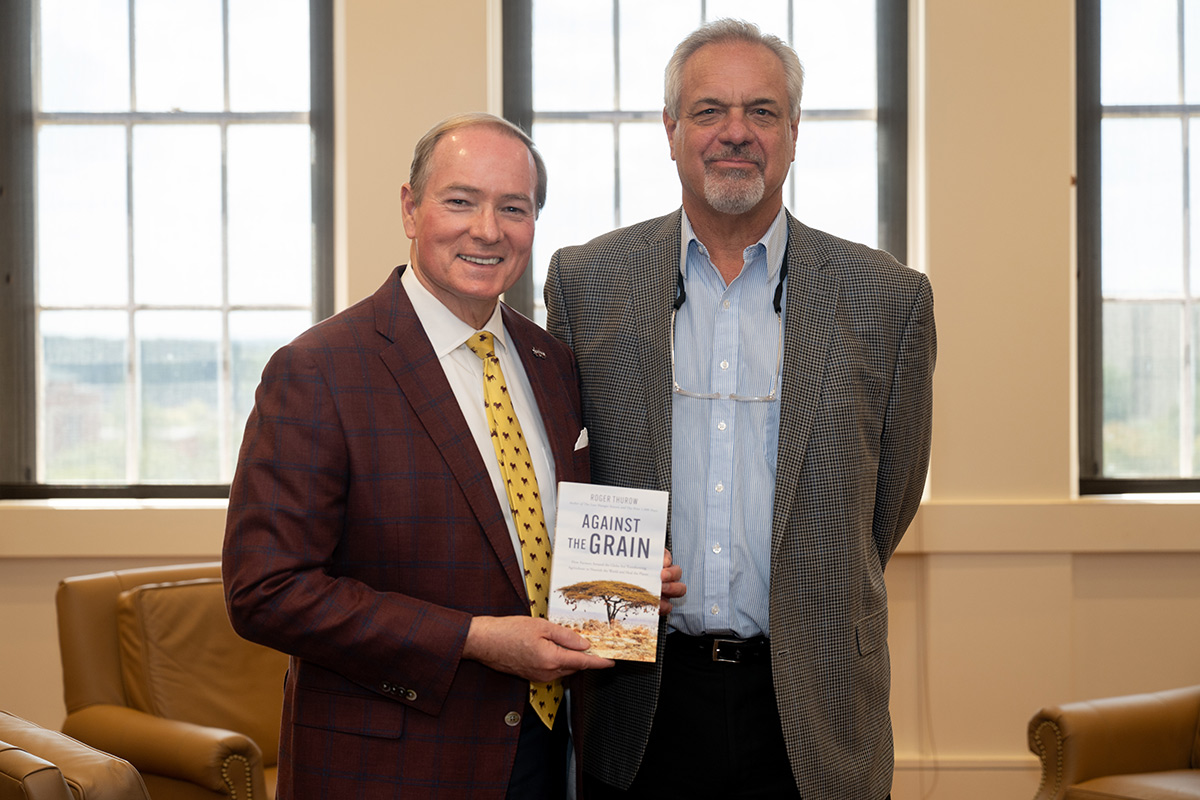 Acclaimed journalist and author Roger Thurow, right, visited Mississippi State in October as a guest speaker in the agricultural education program and the Department of Geosciences. He also visited with MSU President Mark E. Keenum and discussed a shared interest—international food security. Thurow’s latest book "Against the Grain” explores the crucial role of agriculture in combating global hunger and poverty.
