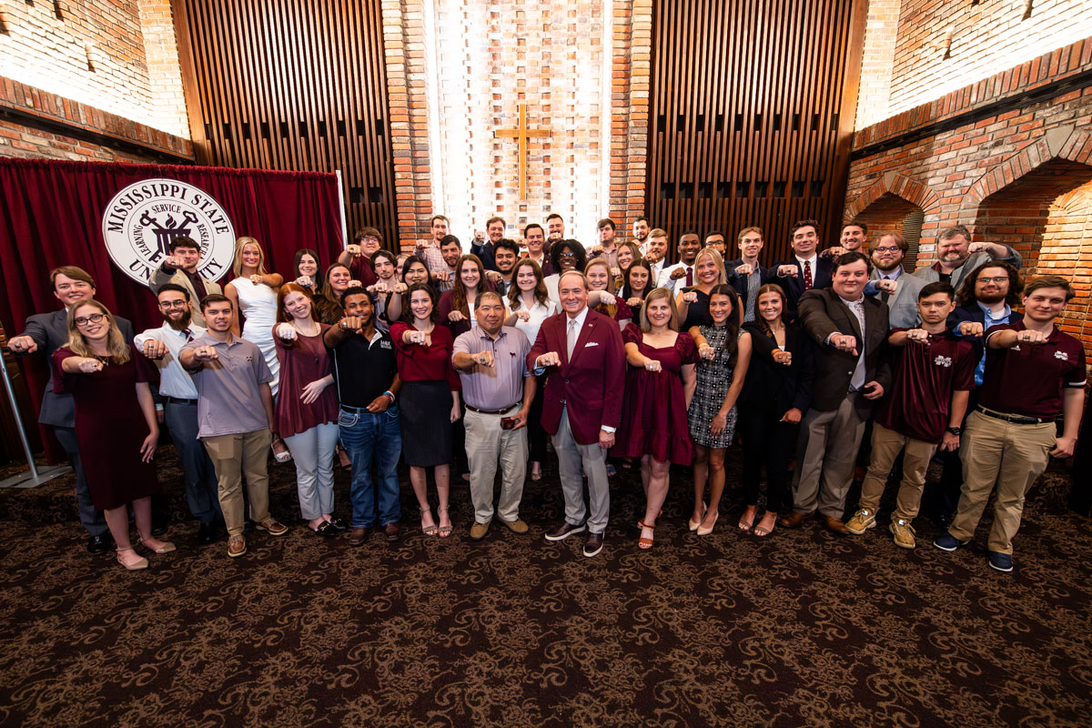 Mississippi State President Mark E. Keenum presents class rings to students in May during the Ring at MSU, a special ceremony hosted by the Alumni Association at the Chapel of Memories before fall and spring commencements.