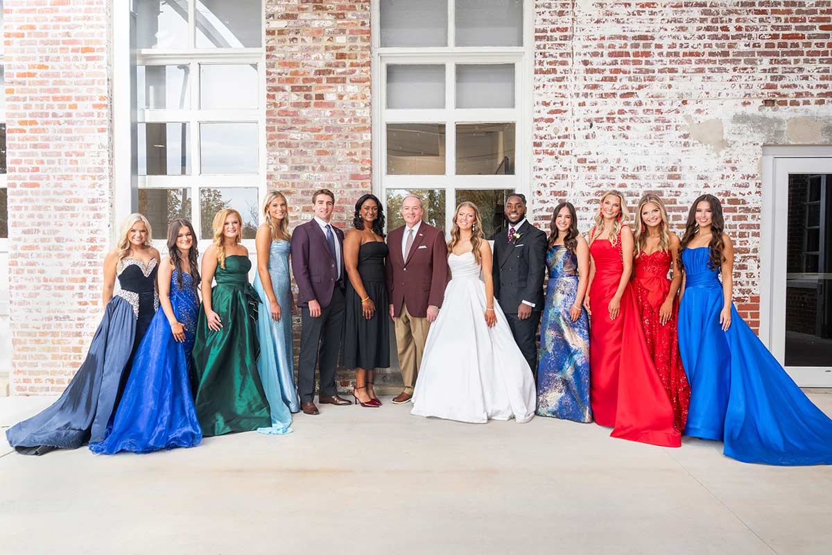 MSU’s 2025 Homecoming Court was introduced by university President Mark E. Keenum in October at the Alumni Tailgate. The court included, from left, Gracie Woodall of Madison; Gracie Hendrix of Holly Springs; Anna Leslie Potts of Starkville; Isabelle Karp of Downingtown, Pennsylvania; August Jones of Bay Springs; Sneha Cherukuri of Madison; Keenum; BellaRuth Steward of Sikeston, Missouri; Jeffery Johnson Jr. of Jackson; Ann Lauren Schmidt of Biloxi; Anne Preston McRae of Meridian; Murry Catherine Alderman of Winona; and Ellen Morgan of Jackson.