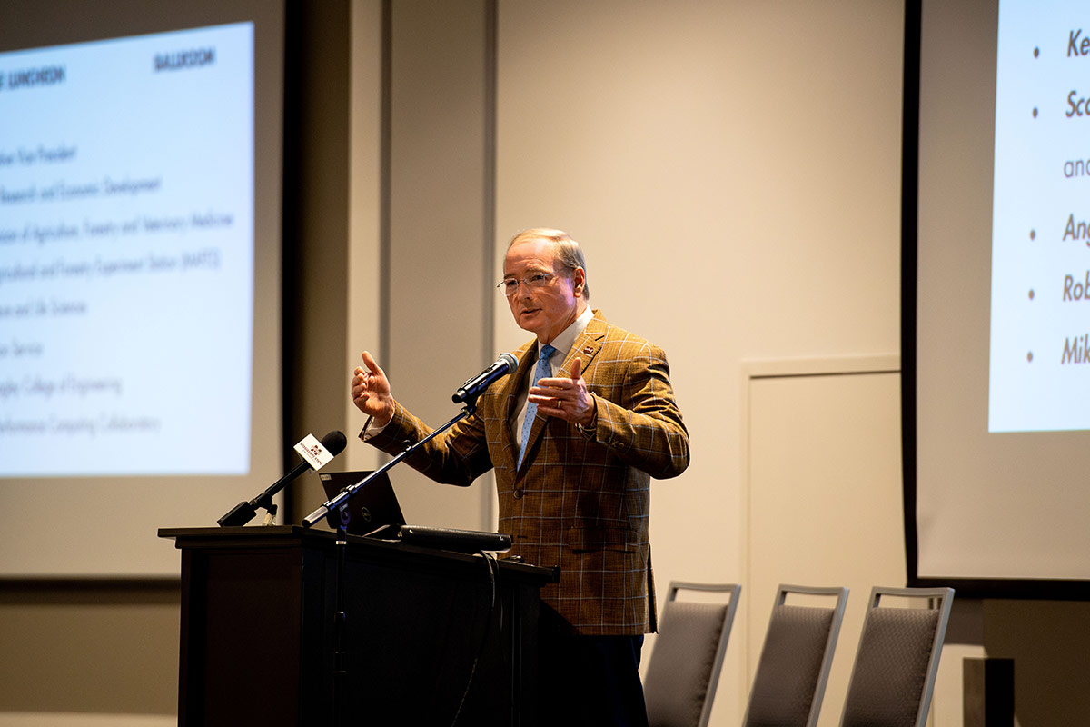 MSU President Mark E. Keenum opened the 4th Annual AI in Agriculture and Natural Resources Conference in early April. The meeting brought together national leaders in artificial intelligence and agriculture to showcase groundbreaking advancements and their practical applications in the field.