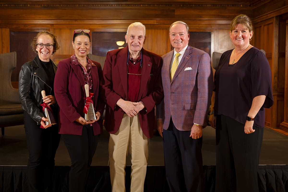 Noted Civil War experts Judith Giesberg, left, and Brandi C. Brimmer were on campus at the beginning of October to lead a discussion at the eighth annual Frank and Virginia Williams Lecture Series on Abraham Lincoln and Civil War Studies. Their talk on the 16th president and the amendment abolishing slavery was made possible by MSU benefactors Frank Williams, third from left, and his wife Virginia, who created the annual lecture series. These three guests were welcomed to the university by MSU President Mark E. Keenum, second from right, and Susannah Ural, right, the university’s Frank & Virginia Williams Chair for Abraham Lincoln and Civil War Studies.