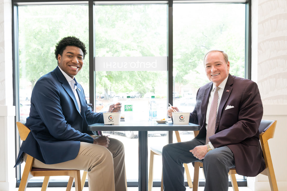 Student Association President Cameron Cummings had lunch in April with MSU President Mark E. Keenum. The two discussed many topics important to the university’s student body, including updates to the campus and student life opportunities.