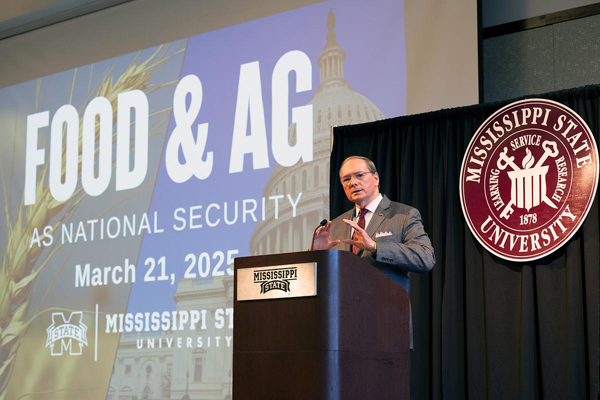 In mid-March, MSU hosted its first Food and Agriculture as National Security Conference, with more than 250 experts gathering from the military, agriculture and global food sectors to examine their interconnectivity in promoting stability and resilience in the U.S. and globally. MSU President Mark E. Keenum welcomed the group and told them the university is well positioned to lead discussions such as this—with a Top 5% ranking in agriculture research for over two decades from the National Science Foundation.