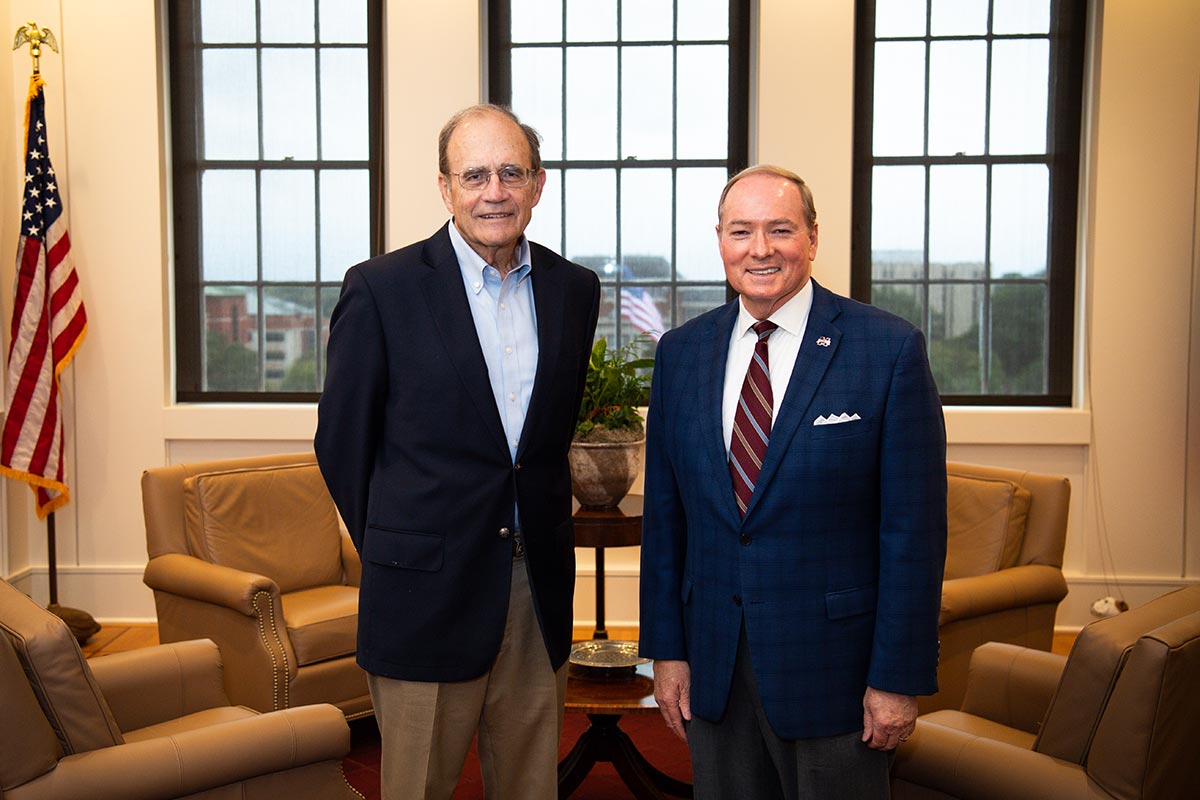 Lieutenant Governor Delbert Hosemann, left, joined the leadership class of MSU President Mark E. Keenum in early October to share his experiences in leadership and inspire students in the course to reach for their goals.