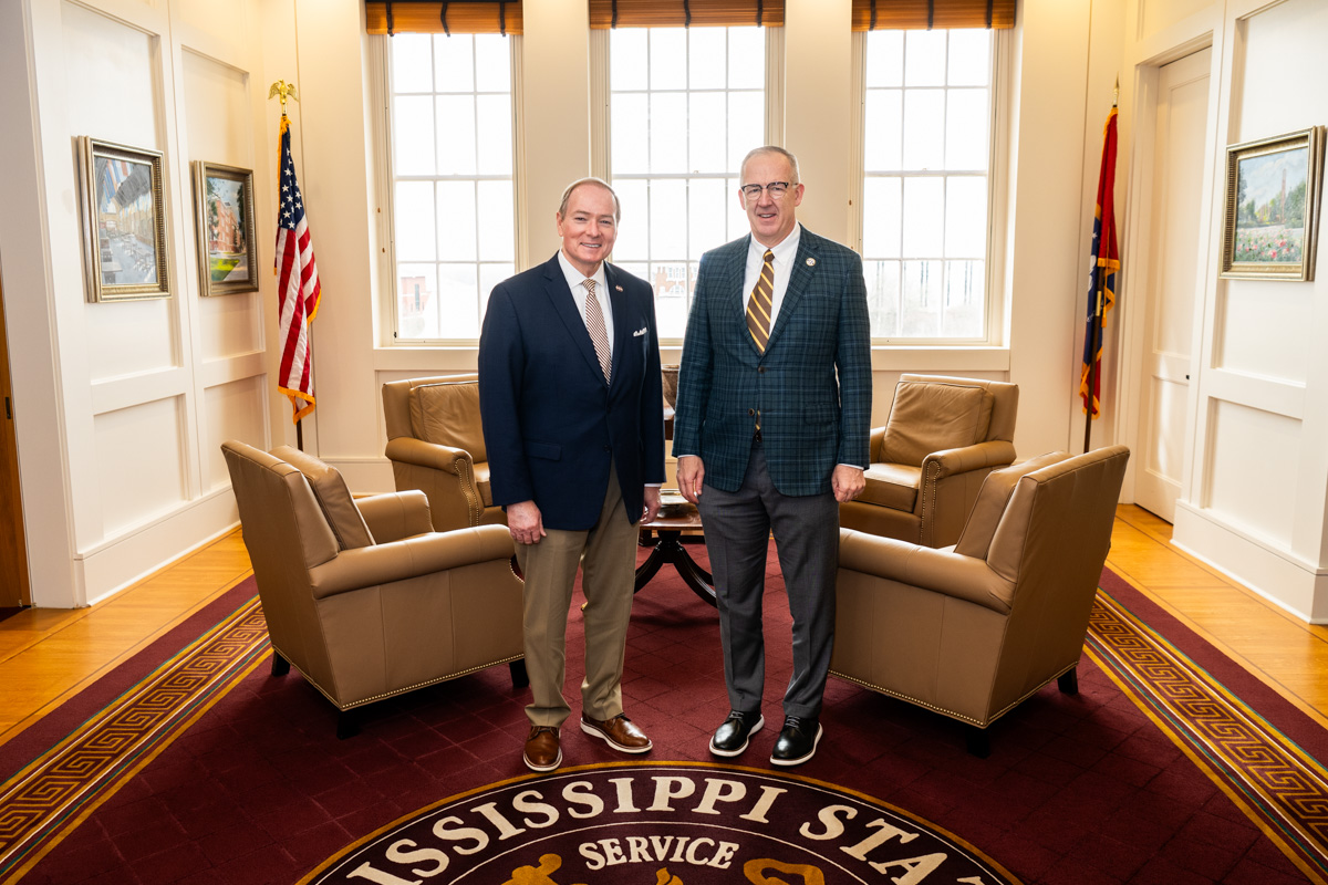 MSU President Mark E. Keenum hosted Southeastern Conference Commissioner Greg Sankey in February to discuss issues impacting SEC football, the College Football Playoff system, and ongoing policies affecting student athletes.