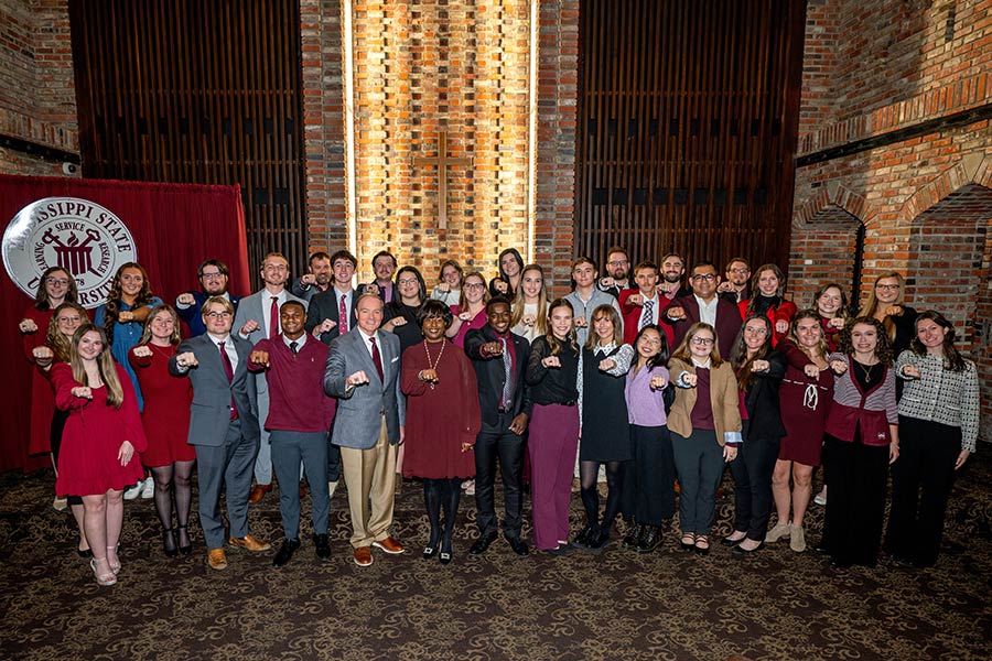 Mississippi State students received their class rings during a special event in the Chapel of Memories in December. Hosted by the MSU Alumni Association, the Fall Ring Ceremony marks the start of fall graduation celebrations and honors a distinguished Bulldog alum. This year’s event featured university President Mark E. Keenum, first row, center, and two-time MSU graduate Camille Scales Young, right of Keenum. Young, principal and director at Cornerstone Government Affairs in Jackson, is a former MSU Alumni Association national president and College of Ag and Life Sciences Alumni Fellow.